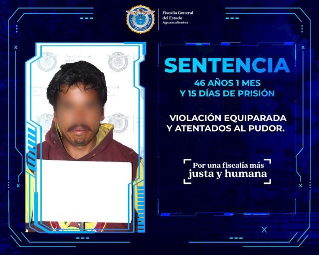 AGUASCALIENTES, AGS.- Un sujeto que durante seis años atacó sexualmente a una menor de edad fue hallado culpable por los delitos de violación equiparada y atentados al pudor, por los que recibió una sentencia condenatoria de 46 años 1 mes y 15 días de prisión.