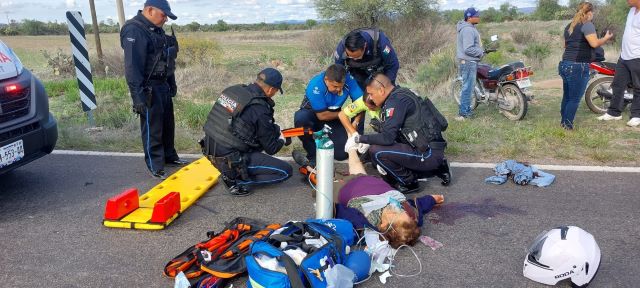 El servicio de emergencias 911 recibió reportes sobre el accidente, por lo que al lugar acudieron oficiales de las Policías Estatal y Municipal de Asientos, además de paramédicos del ISSEA, que brindaron los primeros auxilios a la fémina y le diagnosticaron una lesión en la cabeza, probable fractura de tibia y peroné de la pierna derecha y heridas abrasivas en diferentes partes del cuerpo.