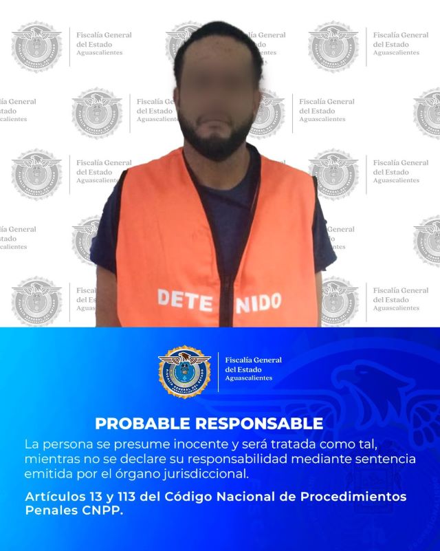 Agentes de la Policía de Investigación Criminal lograron la detención de Fernando “N” en el fraccionamiento Lucero de la Cruz, en la ciudad de Aguascalientes, quien fue presentado ante la autoridad judicial.