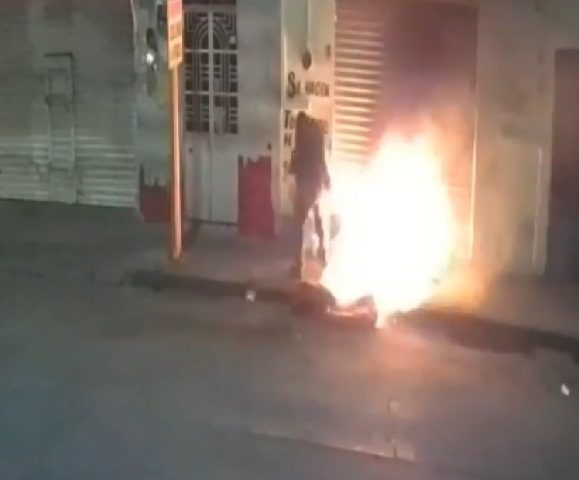 Al revisar las grabaciones de una cámara de vigilancia de un negocio cercano comprobaron que la cobarde acción quedó grabada, por lo que se esperaba que a través de las imágenes pudiera ser identificado el sujeto que intentó matar al indigente.