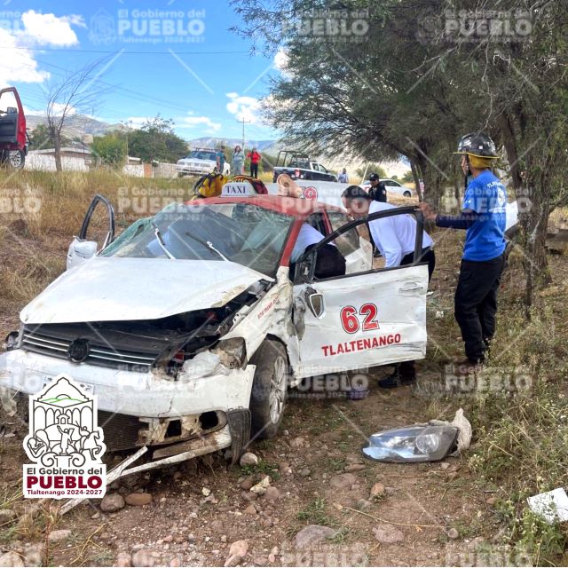 TLALTENANGO, ZAC.- Un taxista resultó lesionado tras sufrir una aparatosa volcadura en la carretera estatal con dirección a Jalpa.