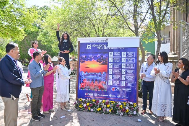 AGUASCALIENTES, AGS.- En un ambiente lleno de música, danza, tradición y color, la gobernadora de Aguascalientes, Tere Jiménez, encabezó en el emblemático Jardín de San Marcos la colocación del tradicional bando solemne que anuncia la edición 2025 de la Feria Nacional de San Marcos (FNSM).