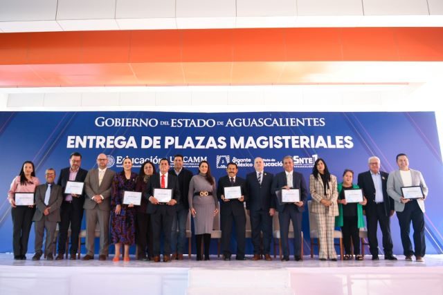 “Hoy estamos otorgando a nuestros docentes no solo una plaza, sino la certeza de que su labor es valorada y que su esfuerzo contribuye directamente al futuro de nuestros niños y jóvenes. Reconocemos su esfuerzo y trabajo, ustedes buscan ser los mejores y eso repercute en muchas familias de Aguascalientes, ustedes son parte fundamental del crecimiento económico del estado; también los quiero felicitar porque somos el primer lugar mundial en matemáticas gracias a ustedes, a su dedicación y esfuerzo diario”, expresó Tere Jiménez.