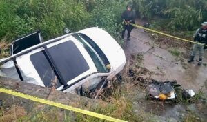 Al recobrar la conciencia, se dio cuenta de que estaban fuera de la carretera, dentro de una zanja sobre un arroyo. No logró localizar ni su teléfono ni el radio para pedir auxilio.