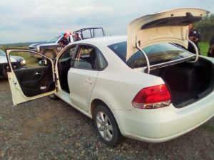 Ambos iban en un auto Volkswagen Vento, color blanco y con placas de circulación GVM-059-A de Guanajuato.