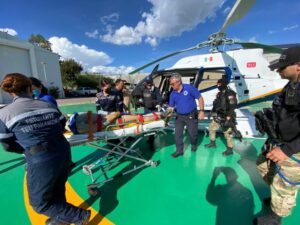 A dicha puerta de acceso arribaron los helicópteros Halcón 1 y Fuerza 1 de las Secretarías de Seguridad Pública Municipal y Estatal de Aguascalientes para abordar a los otros dos pacientes; el primero trasladó a María Guadalupe al Hospital Miguel Hidalgo y el segundo llevó a Misael de Jesús hasta el helipuerto de la SSPE en el fraccionamiento Ojocaliente I de Aguascalientes, donde ya lo aguardaban paramédicos de la Coordinación Municipal de Protección Civil, que se encargaron de conducirlo al Hospital General de Zona número 2 del IMSS, donde quedó internado.