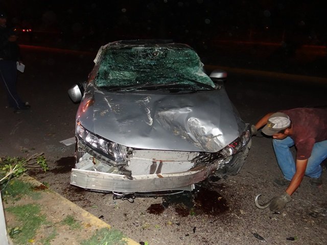 El herido es Claudio Ustlil, de 58 años y con domicilio en la calle Trojes del fraccionamiento del mismo nombre, que dirigía un Honda Civic, color plata, modelo 2013, con placas AFB-12-65, que quedó destrozado a causa del fuerte accidente.