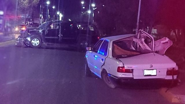 Las autoridades estatales informaron que este último, al cruzar sin precaución la zona, impactó con la parte frontal de la camioneta el costado derecho del auto, cuyo chofer salió eyectado y quedó colgado en la ventanilla del lado del conductor.