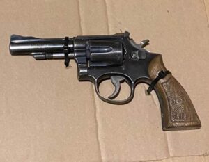 En el lugar le fue asegurada a Patricio un arma tipo revólver de la marca Smith & Wesson, calibre .22 con empuñadura de madera en color café, asimismo, en el interior del cilindro le encontraron tres cartuchos percutidos y uno útil calibre .22.