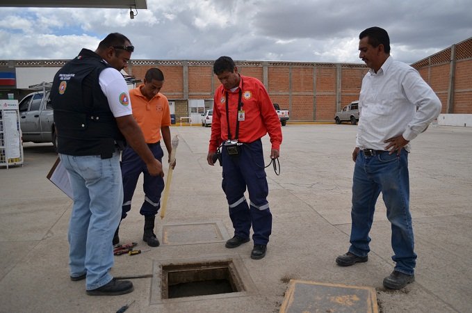 Joaquín Cabrera Vargas y Francisco Álvarez Jiménez acompañaron a Ángel Muñoz Castañón, titular de Protección Civil de Calera en la verificación de las válvulas, estaciones de despacho, bombas, sistemas internos de protección civil y de algunos procesos.