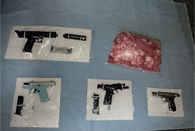 Se les aseguraron dichas armas, tres cargadores, dos cartuchos, un silenciador y 301 gramos 7 miligramos de clorhidrato de metanfetamina.