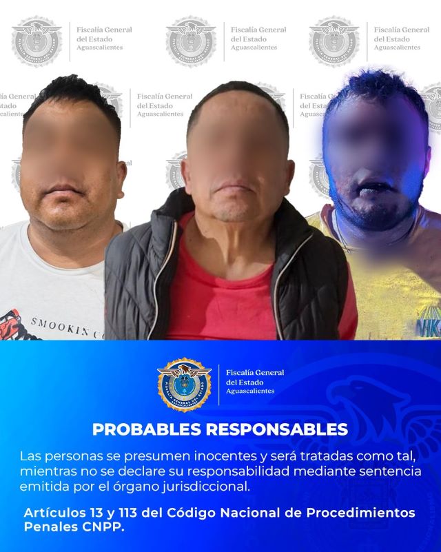 AGUASCALIENTES, AGS.- La Fiscalía General del Estado de Aguascalientes obtuvo de un juez de Control el auto de vinculación a proceso en contra de Alan “N”, Pedro “N” y Mauricio “N” por su probable responsabilidad en la comisión del delito de robo calificado.