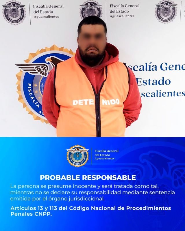 AGUASCALIENTES, AGS.- La Fiscalía General del Estado de Aguascalientes obtuvo la vinculación a proceso en contra de Édgar Daniel “N” alias “Pabel”, quien fue presentado ante la autoridad judicial como probable responsable del delito de lesiones dolosas calificadas luego de que se cumplimentara en su contra una orden de aprehensión.