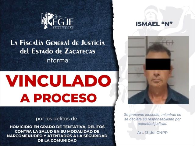 ZACATECAS, ZAC.- La Unidad de Investigación y Litigación logró la vinculación a proceso de Ismael “N” por los delitos contra la salud en su modalidad de narcomenudeo, atentados a la seguridad de la comunidad, cohecho y homicidio en grado de tentativa en perjuicio de la sociedad y elementos de la Policía Estatal.
