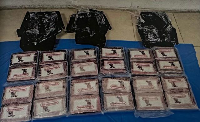 Al revisar la camioneta, los policías municipales localizaron una maleta que contenía 25 paquetes rectangulares con 24 kilos 962 gramos 1 miligramo de clorhidrato de cocaína, así como una cartera con identificaciones y dos teléfonos celulares.