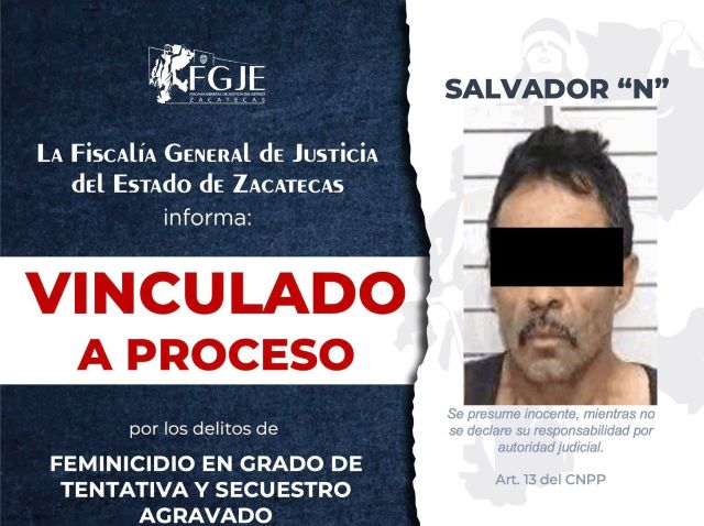 El agresor fue regresado a Zacatecas y presentado ante el juez, que al resolver su situación jurídica le dictó el auto de vinculación a proceso y la prisión preventiva por los dos delitos mencionados.