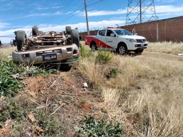 ZACATECAS, ZAC.- El exceso de velocidad y una llanta en mal estado provocaron la volcadura de un automóvil, con un saldo de un muerto y dos lesionados.