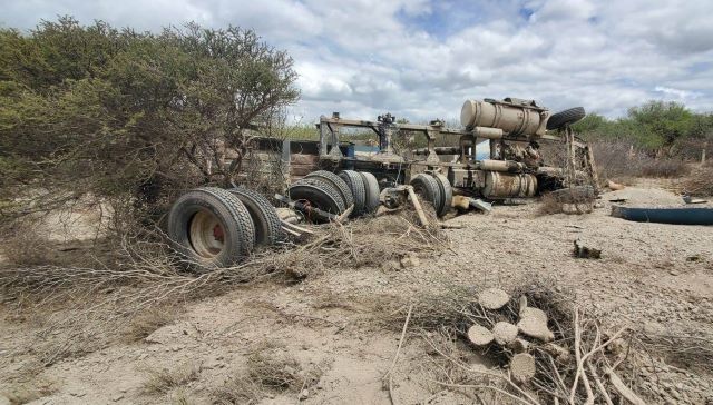 En ese momento se trasladaron al lugar los elementos estatales, municipales y los técnicos en urgencias médicas, quienes al llegar a la altura del kilómetro 2 se percataron de que se trataba de un camión de volteo marca Kenworth, color azul, con placas de circulación del Estado de Aguascalientes, el cual se encontraba volcado sobre su costado izquierdo.