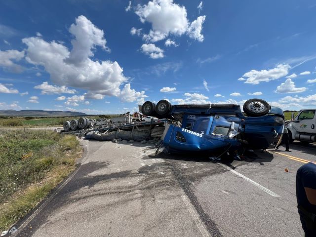 El pesado vehículo se volcó y quedó destrozado sobre la cinta asfáltica.